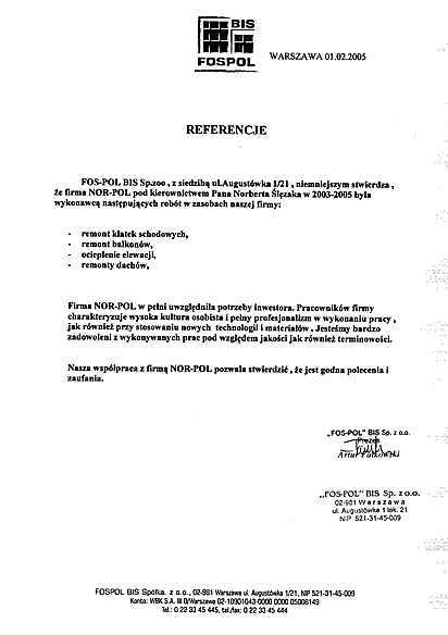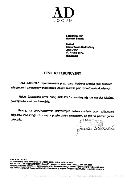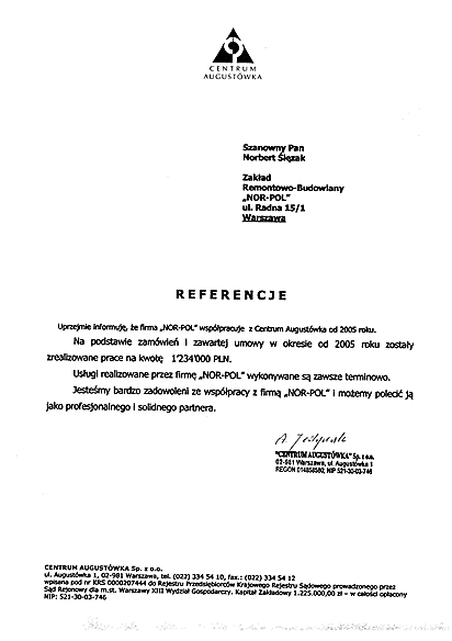 Oto niektóre z referencji świadczące o naszym profesjonaliźmie , zaufaniu naszych klientów i jakości naszej pracy docenianej przez odbiorców.